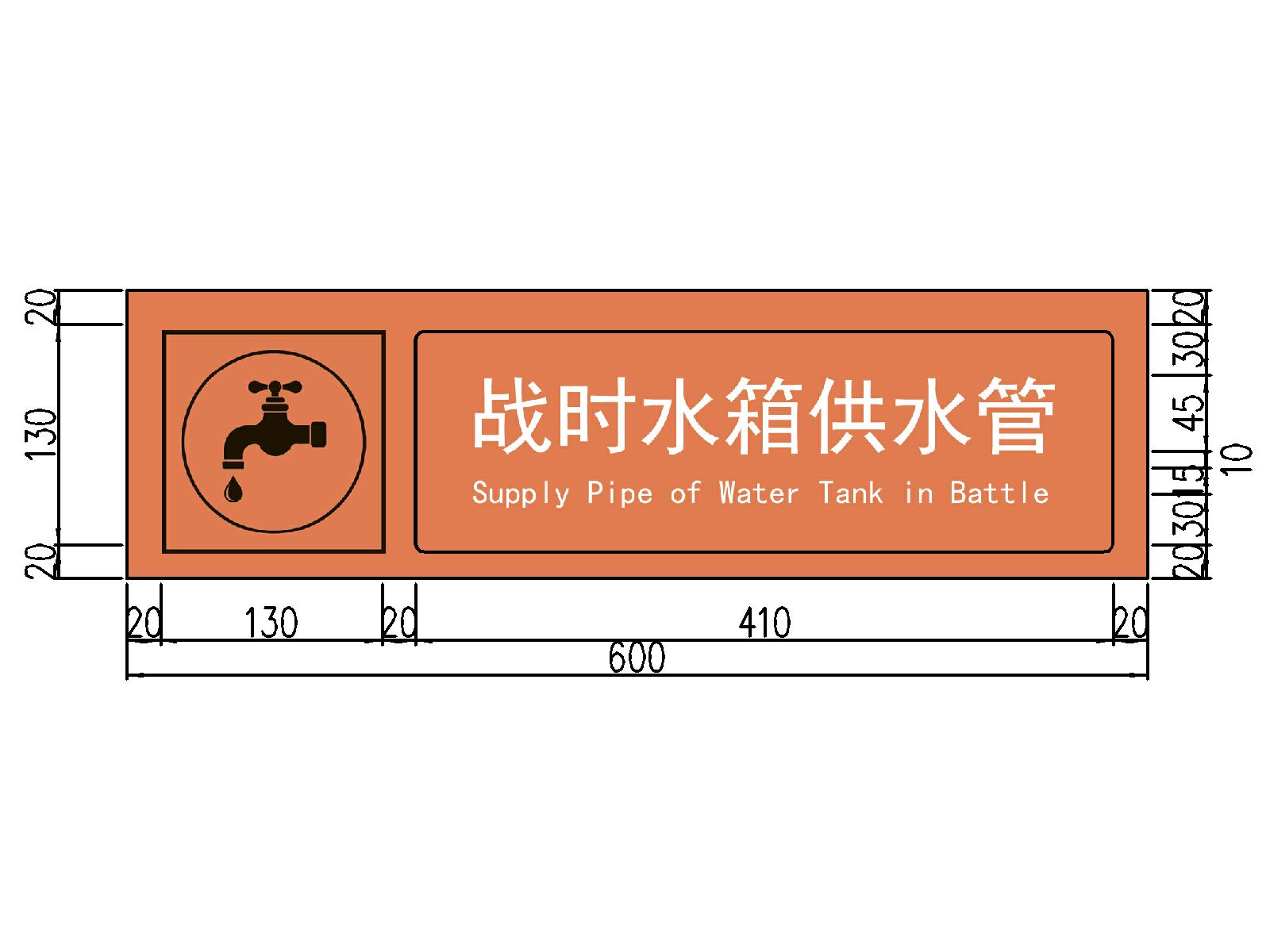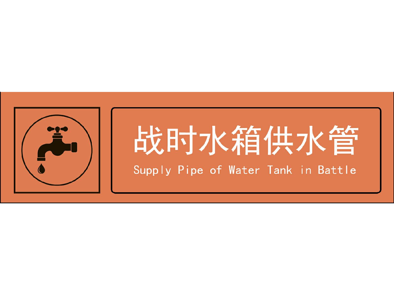 4.6战时水箱给水管标识牌,应在战时水箱给水管引入处墙面安装,距地宜不小于2000mm。标识牌样式示例见图18。