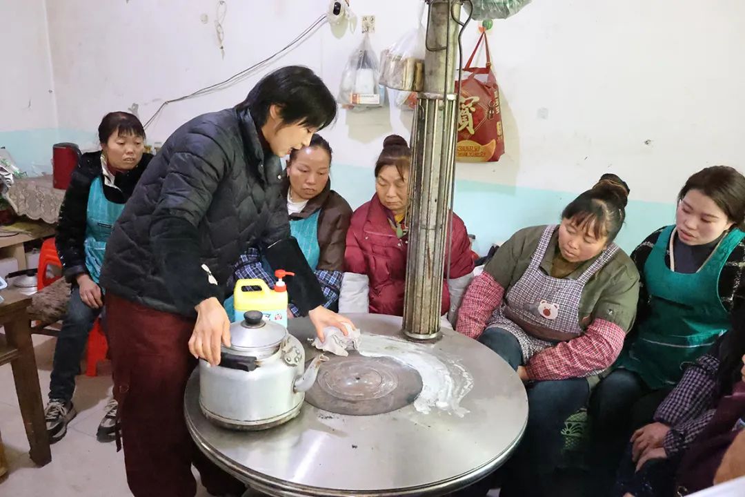 “小苏打是家庭打扫卫生的‘好帮手’,添加洗洁精之后,擦火盘、锅底、灶台上的污渍会非常干净,并且白色衣服发黄也能用小苏打进行漂白……”培训老师一边讲解一边实操,将少量小苏打和洗洁精撒在火炉台面,再倒上些许清水,用抹布稍作擦拭,便将台面擦得锃亮。