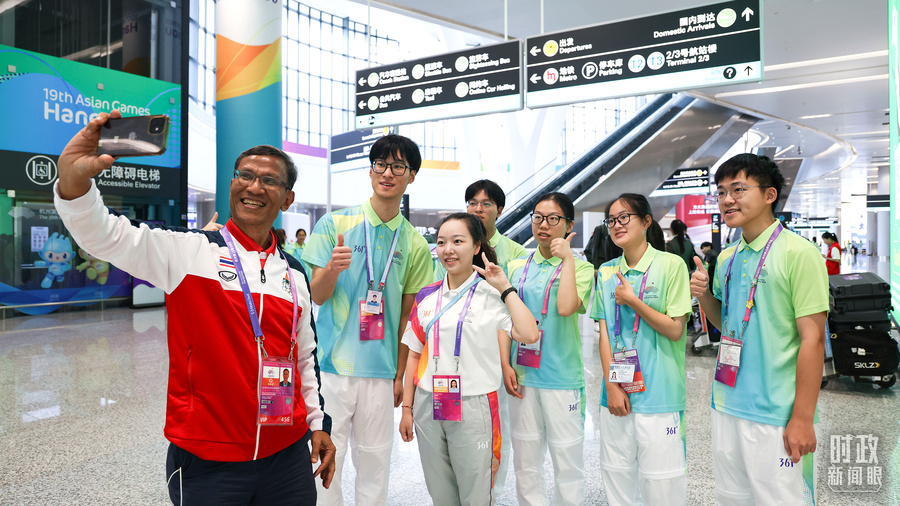△2023年9月21日,杭州亚运会即将开幕,各国运动员陆续抵达杭州,杭州亚运会志愿者——“小青荷”在机场、车站等地提供志愿帮助。(图/视觉中国)