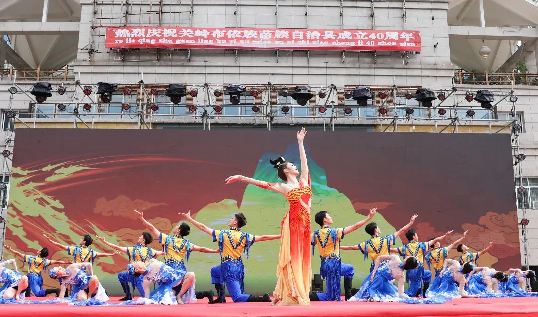 随后,关岭布依族苗族自治县成立40周年活动“关山飞度四十载 岭秀黔中书新篇”欢迎仪式在民族文化广场隆重举行。