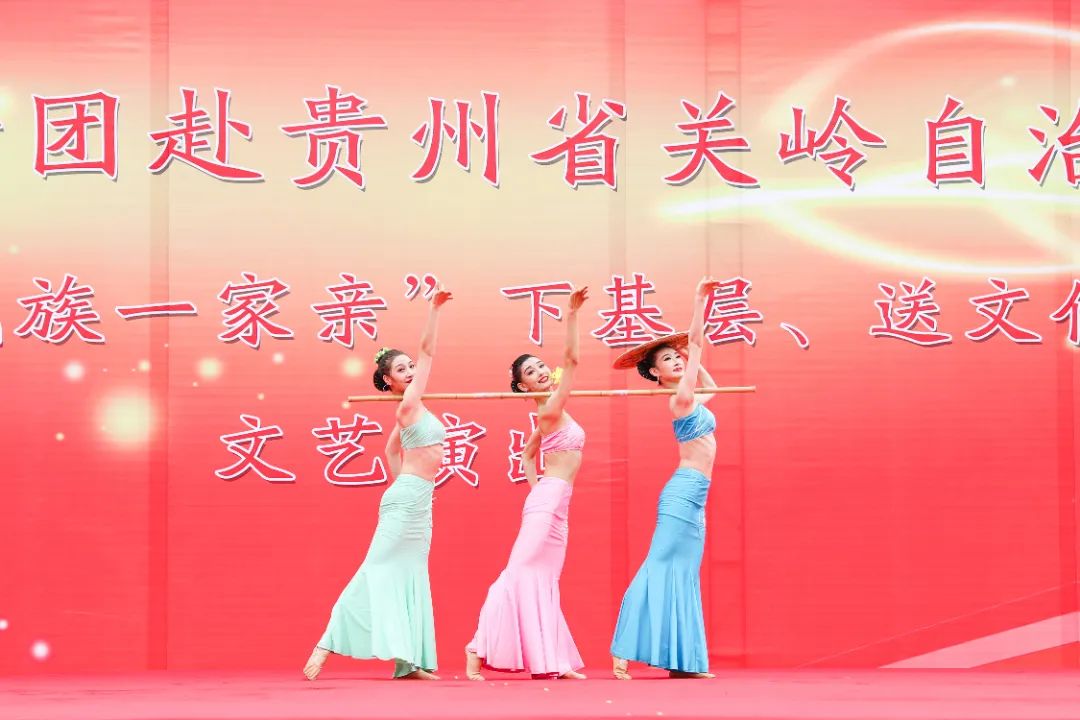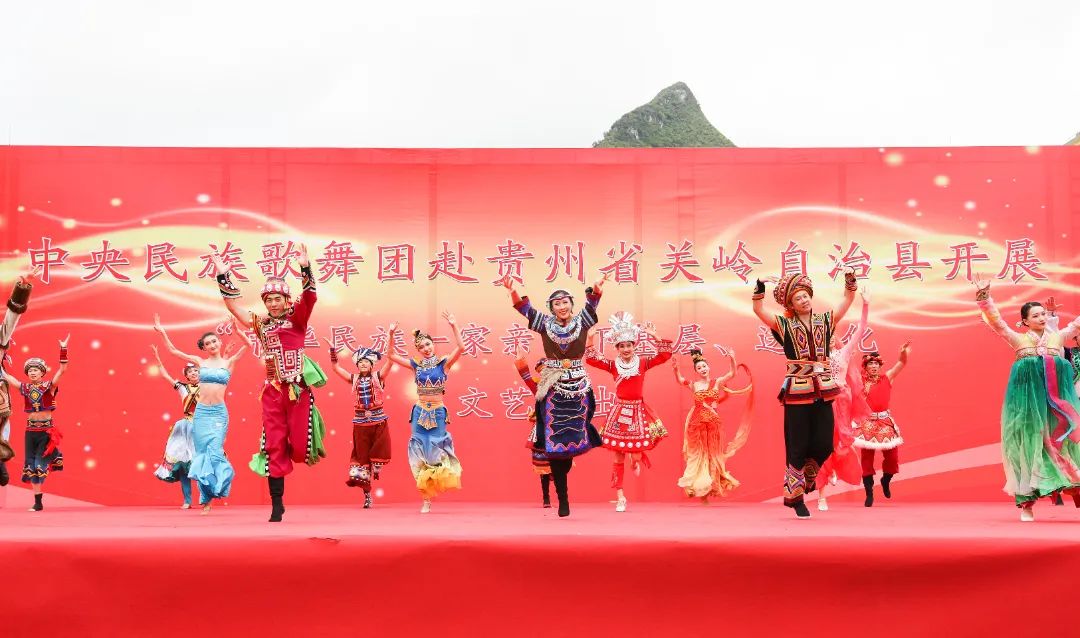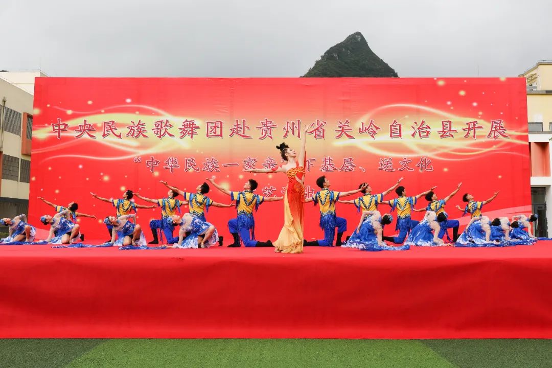 中央民族歌舞团带来《鱼跃龙门步步高》经典舞蹈节目,栩栩如生的“鲤鱼”跃过龙门,将美好的祝福送给关岭布依族苗族自治县的各族同胞,预祝明天更加美好。