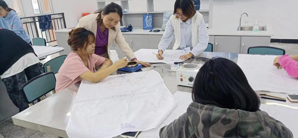 安顺职业技术学院党委高度重视民族团结进步教育工作,坚持以习近平总书记在中央民族工作会议上的重要讲话精神作为根本遵循,紧紧围绕铸牢中华民族共同体意识这条主线,创新方式载体,促进各民族师生广泛交往交流交融,共建共有精神家园。9月3日,贵州省工艺美术大师、贵州省民族民间工艺大师、蜡染非物质文化遗产传承人——杨婷婷受邀对我院“融创多彩民族文化交流社”学生社团进行为期一周的蜡染文化技艺指导培训,“非遗文化进校园——研习蜡染民间技艺”实践活动正式拉开帷幕。